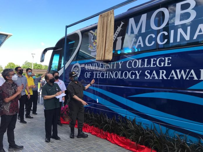 砂拉越南砂 砂流动疫苗接种巴士启用 2021年6月30日 (古晋30日讯)首席部长拿督巴丁宜阿邦佐哈里今早为流动疫苗接种巴士主持启用礼。Advertisement 流动接种巴士有二架,分别由科大巴士改装而成,另一辆由越邦公司借用。 首长为流动疫苗接种巴士主持启用礼。
