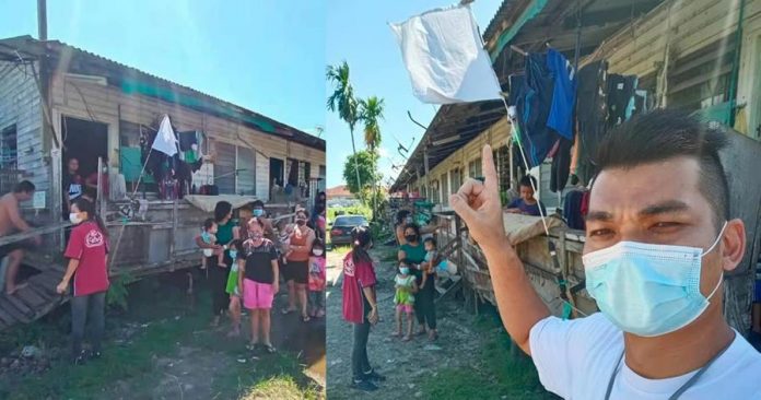 这些住在杜当诊所对面的8户家庭,因受到行动管制令的影响而无法工作,生计大受影响,其中一户家庭今日挂上白旗,代表他们八户家庭的窘境,以取获得慈善团体的关注。
