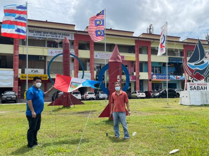 据悉,山打根市议会就曾在4月尾时,派出执法人员前往利达镇空地意图拆除自2018年时就已架设在该处的火箭模型,惟之后在经过行动党一众国州议员斡旋下,才让有关拆除行动喊停,让行动党火箭及民兴党帆船标志模型继续竖立在利达镇空地上。