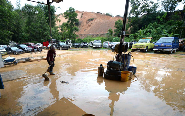 长宏车厂董事二人陈和李氏异口同声地向记者表示,只从两个多月前开始,该座山逐渐从绿油油的树林变成黄色的大泥山时,周围的沟渠(包括路边的沟渠)都被山上的泥浆水阻塞,车厂内的地面一片「黄」洋,也导致基巴拜路面出现泥浆路,危害公路使用者。