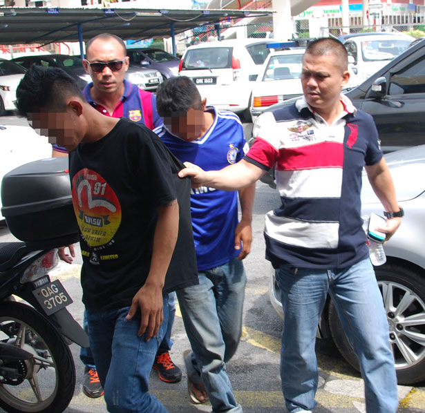 砂拉越北砂 共乘可疑摩托 2骑士遭截查 2015年7月10日 共乘报失摩托车被捕的两名青年。 (本报美里9日讯)两名青年共乘一辆摩托车,被刑警截查时落网。Advertisement 美里警方刑事调查组成员是在今日上午10时左右,在杜当一带逮捕上述两名男嫌犯。 据悉,刑警是发现两名男嫌犯共乘一辆可疑摩托车,于是将他们拦截,检查有关摩托车后,证实是本月6日报失。 两名随即被捕的男嫌犯,事后连同起获的报失摩托车,一并押至中央警局,协助调查。