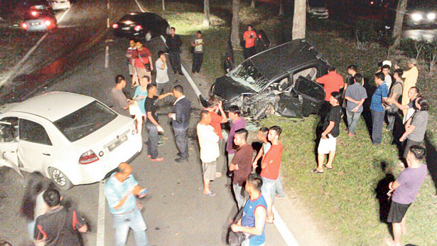而轿车在途径事发地点时,突然一辆车子逆向行驶,从前方驶来,死者乘搭的轿车闪避不及,以致猛憾对方。车祸导致两辆车子的车头严重损毁,肇祸司机头部及胸口受伤,目前仍在医院抢救,而另一轿车内,4名男子皆受伤,尤其死者的伤势最为严重。