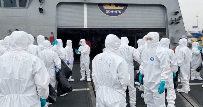 根据韩媒《东亚日报》,清海部队第34梯队因新冠疫情而提前返国,舰上人员在接受PCR核酸筛检以后,由于筛检结果无法在短时间全数出炉,确诊者与未确诊者被迫混居一室,甚至发生出现疑似症状者仍须履行任务的乱象。