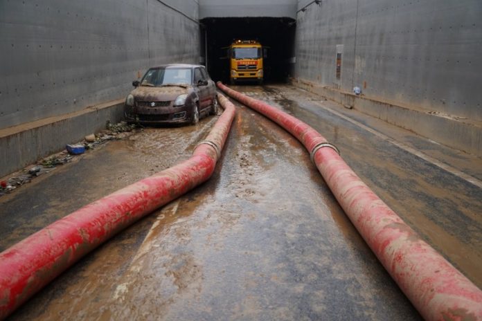 另一方面,周二暴雨中,京广北路隧道在5分钟内被淹平,造成大量车辆、人员被困。在多日救援后,随著水位的下降,隧道内也不断拖出被困车辆,并暂时停放在路边。