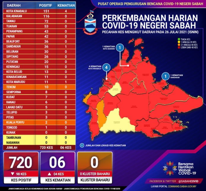 (亚庇26日讯)沙巴今天新增720宗新冠肺炎确诊病例,同时也添6宗死亡病例。