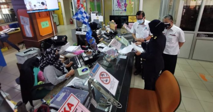 (美里26日讯)面对疫情及防疫标准作业程序,美里陆路交通局有限的服务柜台,现金及电子付款受时限影响。网速欠佳造成每天到该局办理手续人潮爆满,美里省灾难管理委员会成员今日亲临了解,探讨解决此问题。