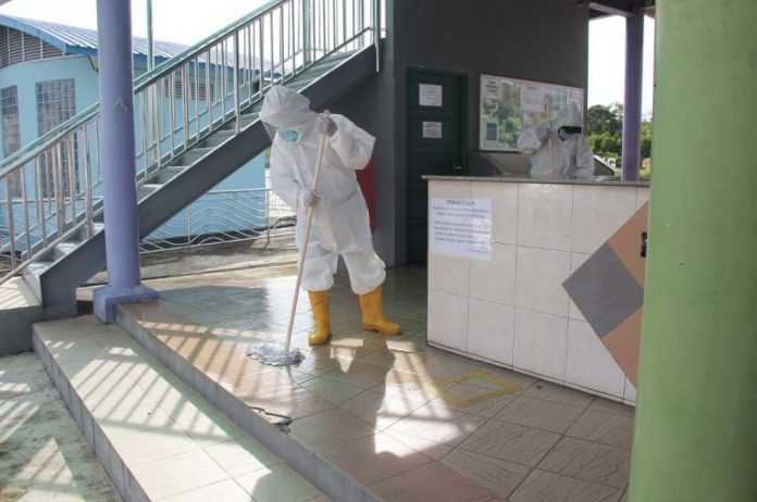 (汶莱斯市27日讯)为了进一步加强遏制新冠病毒在国内传播的措施,都东市政局近日通过服务与维护部门开展了一项卫生运动,对都东市政局管控下的建筑,尤其是公众经常光顾的建筑进行清洁和消毒工作。