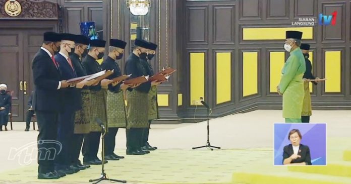 原本根据流程,新内阁正副部长宣誓仪式定于下午2时30分开始,首相拿督斯里依斯迈沙比里、联邦法院首席大法官敦东姑麦慕和政府首席秘书丹斯里莫哈末祖基阿里等将会出席,但首相因接触确诊者而进行自我隔离,因此无法出席这项就职礼。