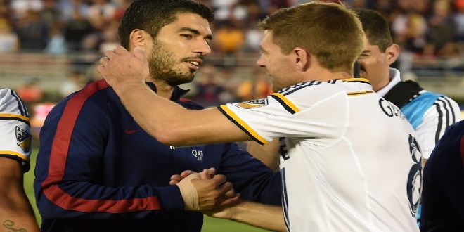 刚加盟银河队的前利物浦队长杰拉德继续首发。杰拉德与苏牙两名前「红军」队友出场时谈笑风生;布斯克茨和前托登罕热刺前锋罗比-基恩作为各自队长出战。