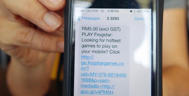 (马六甲22日讯)强制收费短讯等同强盗!夫妻分別申请新线及更换上网配套后,便接获许多必须付费的电玩游戏邀请短讯,以致电话费一度爆涨至逾900令吉,在向电讯公司投诉时却被告知「不关公司的事」,令事主大为不满。