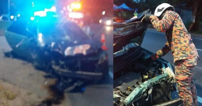 这起车祸今日清晨6时许,在笨珍崩山甘榜(Kampung Rimba Terjun)路段发生。据了解,的摩哆骑士陈琼林(译音)和后座乘客洪金莱(译音)为夫妻,两人皆66岁。