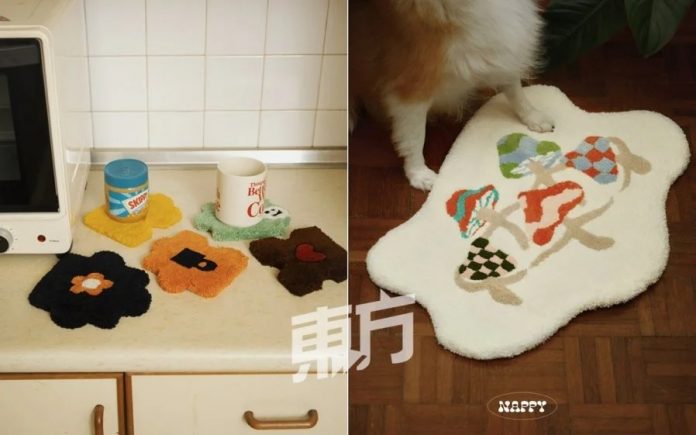 为什么是柔软?原因很简单,因为Nappy的产品主要以手工纯棉簇绒为主,毛茸茸的,很是柔软,目前拥有杯垫、地毯,两个产品线。“我是服装设计系的学生,因为对簇绒感兴趣,便尝试制作。”品牌的第一样产品是杯垫,负责设计和制作的黄安柔说,这是因为刚开始还不熟手,所以先从小样的设计开始。杯垫采用拼图设计,因为她喜欢从一片片零散的图块,慢慢拼凑出完整的一幅画的感觉。
