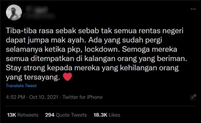 一名马来男网民对于政府的跨州宣布有感而发,于昨天在自己的推特账号上发布这段推文,结果引起广大网民共鸣,被转推分享1万2700次,并获得1万7900个赞。