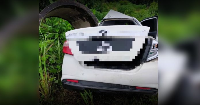 (古晋4日讯)雨天路滑导致失控,车子猛撞路边涵洞,女司机夹毙司机座。