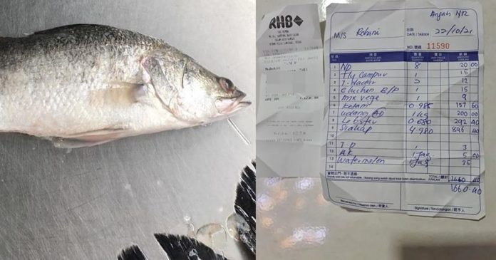 惟她说,当结账时才知道上桌的金目鲈鱼重达4.98公斤,而账单总消费是1660令吉。