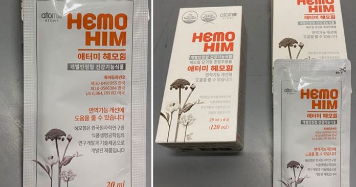 (新加坡6日讯)在香港出现4名女子服用韩国知名传销品牌艾多美(Atomy)“HemoHIM艾多美焕力饮”产品,疑似中毒并在香港下架后,新加坡艾多美也宣布暂停销售同款饮品,并已将产品送往当局检测。