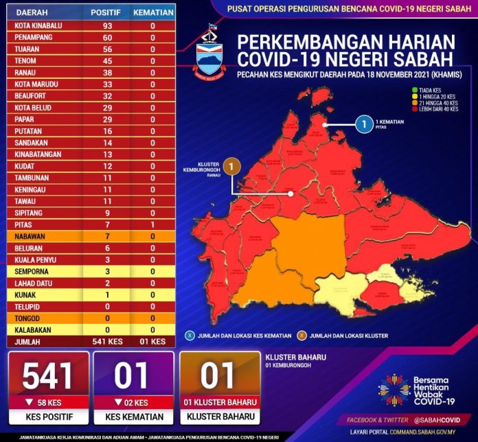 (亚庇18日讯)沙巴新冠疫情犹如摇摇球忽上忽下起伏不定,今日新增541宗确诊病例,同时爆发1个新感染群,以及再有1人病殁。