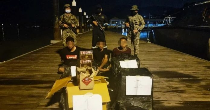 初步调查发现,该艘快艇共有3名年龄介于20至40岁的印尼籍男子,以及2190盒市值1万5330令吉的走私香烟。