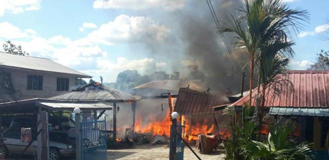 (本报诗巫29日讯)幸运村2间单层高脚木屋在今午烧毁,幸好当时在屋内的3名老妇及2名小孩都获救,唯其中1位老妇轻微灼伤。