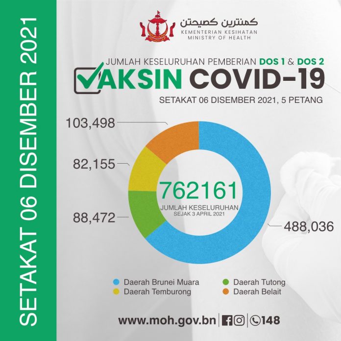汶莱卫生部长拿督伊桑在今午疫情新闻发布会上表示,截至12月6日下午5时,汶莱卫生部已为民众接种了76万2161剂的新冠疫苗。