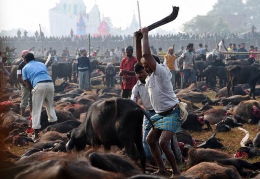尼泊尔南部偏远的巴利亚普村(Bariyarpur)有一个数百年歷史的传统,每五年將举行一次杀生祭,屠杀上万只动物,以祈求印度教权利女神嘉地麦(Gadhimai)带来好运和繁荣。而这个祭祀活动日前被宣佈全面禁止。