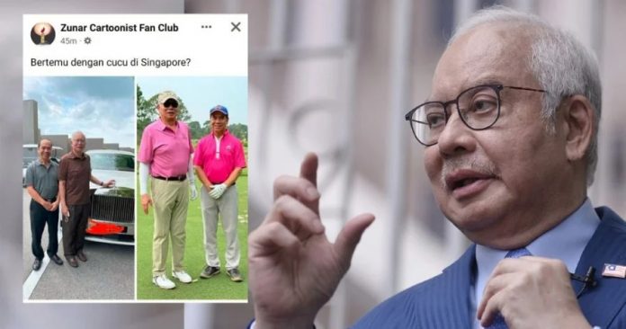 该面子书专页发文说,“与在新加坡的孙子见面?”,借此讽刺纳吉借探望孙子名义,实则会面新加坡富商。