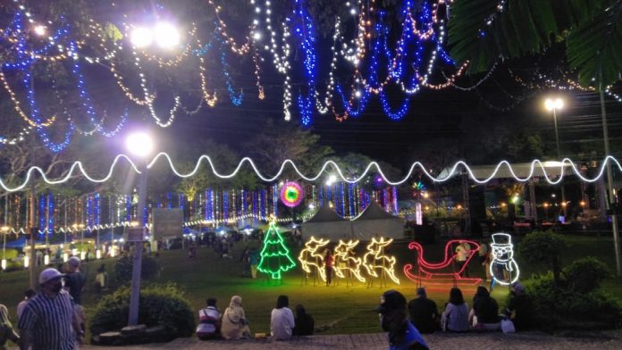 (亚庇14日讯)2021圣诞联欢今明两晚在亚庇独立草场举行,吸引大批民众前往参与其盛。