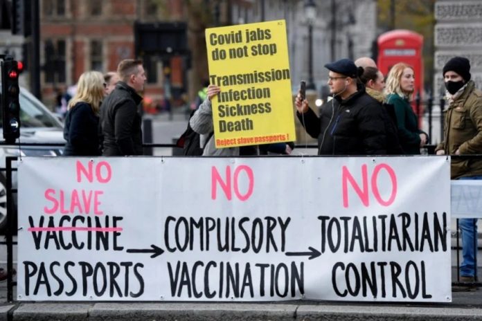 英国国会通过在英格兰地区推行新冠肺炎通行证措施,从本周三起,进入大部分的大型场所,包括体育场馆、夜店等,要出示阴性检测或完成疫苗接种的证明。