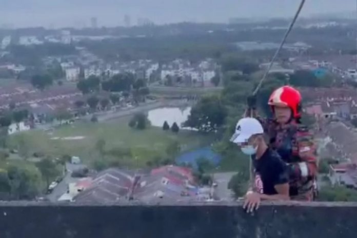 (吉隆坡8日讯)一名27岁的巫裔男子疑因家庭问题,在18层公寓顶楼企图自杀,在消拯员经过4小时后劝说下成功获救。