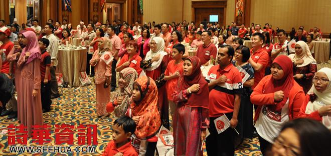 (汶莱斯市11日讯)配合新加坡50周年国庆,新加坡驻汶莱专员署9日当天在帝国饭店举办侨民聚会。超过500名新加坡人出席了庆祝,与全球各地的同袍一同高唱国歌、宣读国民誓言。