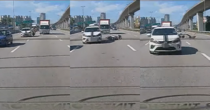 他说,一辆行驶在快速车道的第二国产迈威轿车,在转换车道时与摩哆发生碰撞,导致骑士跌落路面受伤。
