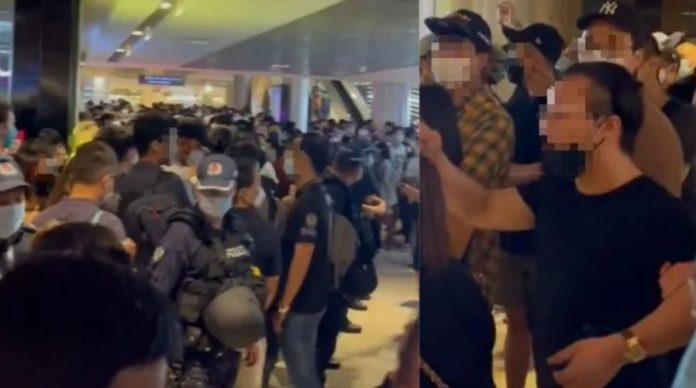 《8视界新闻》报导,网民@ruitianbear昨天在社交媒体TikTok发布一段35秒视频,片中一名身穿黑色T恤的男子在爱雍·乌节的Swatch专卖店外,站在人群中用英语向警方大声地说道,他们在凌晨4时到场等候,随后配合品牌经理的指示往后退,他们才会站在后方。