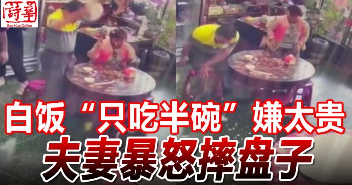 台湾一对夫妻日前到苗栗餐厅用餐,店员事前告知,白饭以人头计费,一人20元新台币(2.95马币),没想到吃到一半妇人却因“自己只吃半碗饭”不满收费方式而咆哮,丈夫甚至爆怒摔盘子。