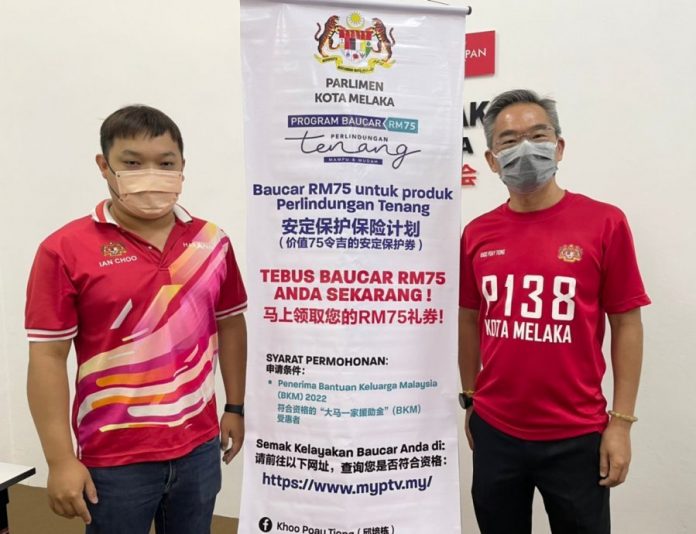 (马六甲30日讯)马六甲市区国会议员邱培栋呼吁大马一家援助金(BKM)受惠者保握机会,申请安心保障优惠券计划(Program Baucar Perlindungan Tenang),以便在购买保险时,享有75令吉的优惠折扣。