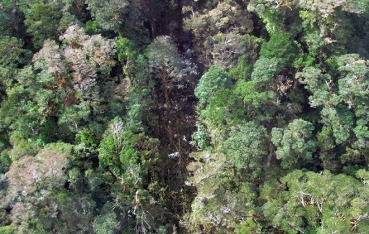 法新社报导,印尼国家搜救总署今天公布疑似坠机地点上空拍照,浓密的森林中有处地点似乎被火势熏黑,而且有些残骸四散。