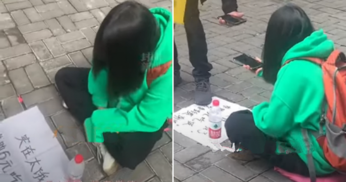 中国媒体报道,常德一名年轻女孩坐在路边摆着牌子,上写“实在太饿”,向公众乞讨人民币6元(约3.8令吉)早餐费,路过行人纷纷献爱心捐钱,结果女孩短短半小时就获得了近人民币300元(约194令吉)。