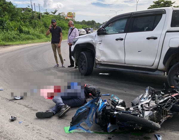 亚庇23日讯|一辆四驱车从回转处驶出时,与摩哆发生碰撞,导致男骑士当场毙命。