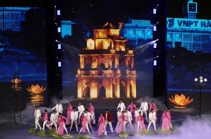 没有开幕式的技术和视觉效果,东运会闭幕式在一片歌舞声中掀开序幕。多首同河内有关的歌曲,配上优美的舞蹈和道具,河内田径宫内顿时呈现出越南首都充满文化色彩的一面。