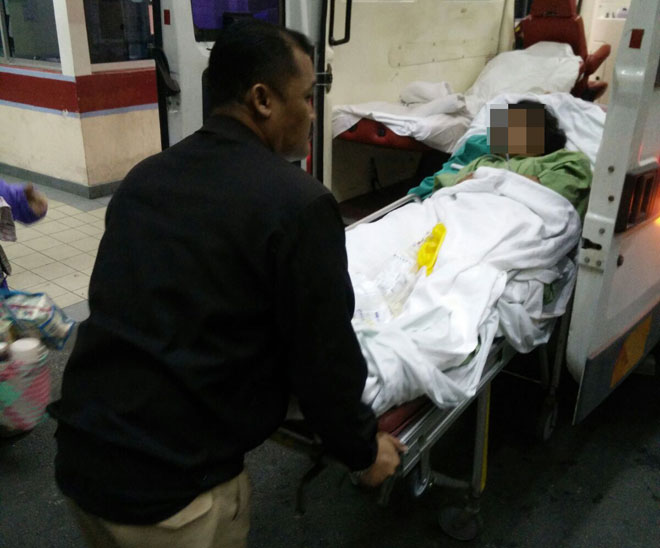 过后于午夜12时许,始被转送古晋砂中央医院急诊部。