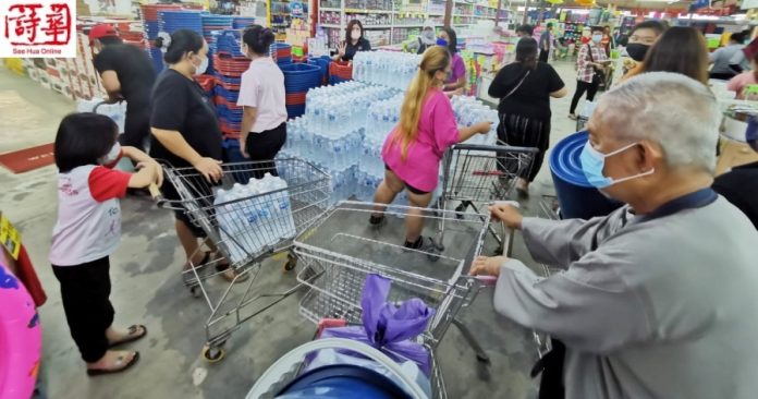 据悉,不少民众在收到风,不排除今天的自来水仍然无法恢复正常供应,因此二话不说先到出现矿泉水商店疯狂抢购,以策安全,毕竟在无水状态之下,对普通的洗漱及如厕都变成严重的问题。