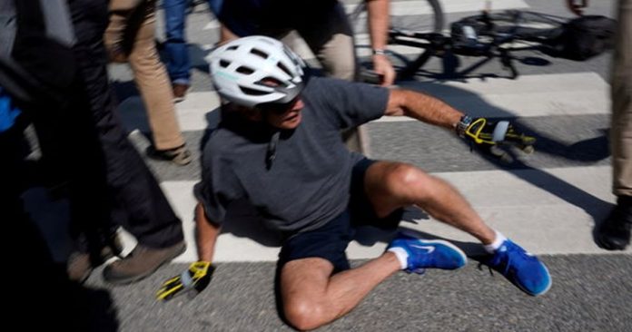 拜登是与第一夫人吉儿(Jill)在德拉瓦州雷荷勃斯滩(Rehoboth Beach)的度假屋附近一起骑乘自行车,当他摔车时,正停下与民众交谈。