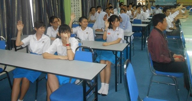 该校校长尤水升今早召集中六第二年的学生在行动会议室,讲解教育部发佈的最新穿著指南,由中六副校长陈康鸣讲解指南,共有65名学生在会议室內聆听讲解。