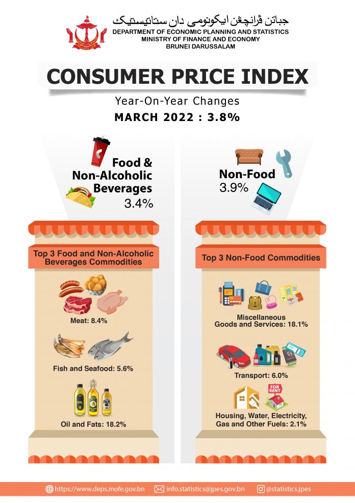 2022年3月的完整消费者物价指数报告可在JPES网站“https://deps.mofe.gov.bn”上获得。