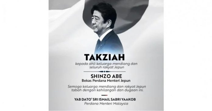 (吉隆坡8日讯)随著日本前首相安倍晋三遭枪击后不治,首相拿督斯里依斯迈沙比里向日本政府及国民致哀。