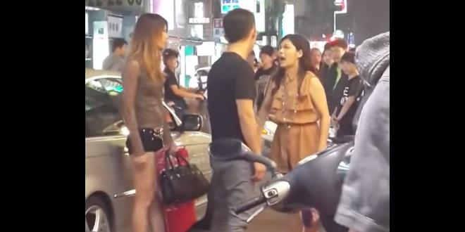 台湾有民众到台中逢甲夜市逛街,遇到街头吵架,疑似老公把老婆的车子给小三开,却被老婆给遇上,当街拦下来大吵,逛街民众直击,录影po网,瞬间上万人分享,说这是人生八点档。