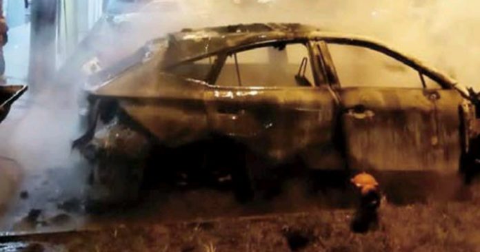砂拉越南砂 停在古晋1咖啡店前 Toyota Harrier半夜离奇烧毁 2022年7月19日 (古晋19日讯)停泊咖啡店前休旅车午夜起火烧燬﹐幸无引起伤亡事故。Advertisement 此宗火患是昨日凌晨2时许﹐在7哩圣淘沙1间咖啡店五脚基前停车位发生﹐烧燬的休旅车为1辆丰田HARRIER﹐火患发生时﹐当地民众立即致电消拯局投报。 消拯局在2时12分获报后立即出动峇都林当消拯队前往现场救援﹐抵达现场时丰田休旅车陷入一片火海中﹐经消拯员一番灌救后迅速被扑灭。 除了休旅车被100%烧燬外﹐该停车位的咖啡店挡雨棚也被烧燬﹐消拯队在凌晨2时55分结束此次行动。