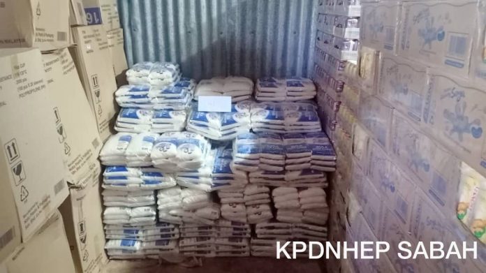 贸消部是在警方普通行动队伍协助下,于21日傍晚6时20分,在上述没有门牌的货仓内起获402公斤1公升包装的食用油、864公斤砂糖和914公斤面粉,市值约6,991.40令吉。