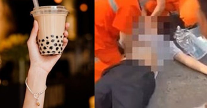 中国四川省资阳市24日发生噎死意外,一名16岁的少年一边走路一边喝珍珠奶茶,结果不慎被珍珠卡住喉咙,倒地失去意识,医护人员到场抢救,少年仍旧没有呼吸心跳。