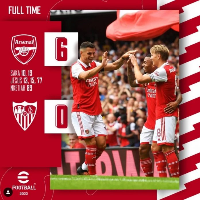 在今晚举行的酋长杯,东道主阿申纳凭著热苏斯大演帽子戏法,在主场以6比0大胜塞维利亚,捧杯之馀,亦为即将开锣的英超造势。