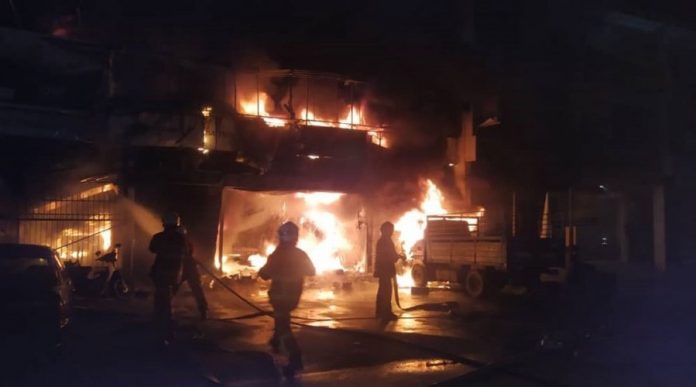 这起火灾于周一清晨月5时,在亚依淡路穆斯林孤儿院对面的一家汽车轮胎店发生。
